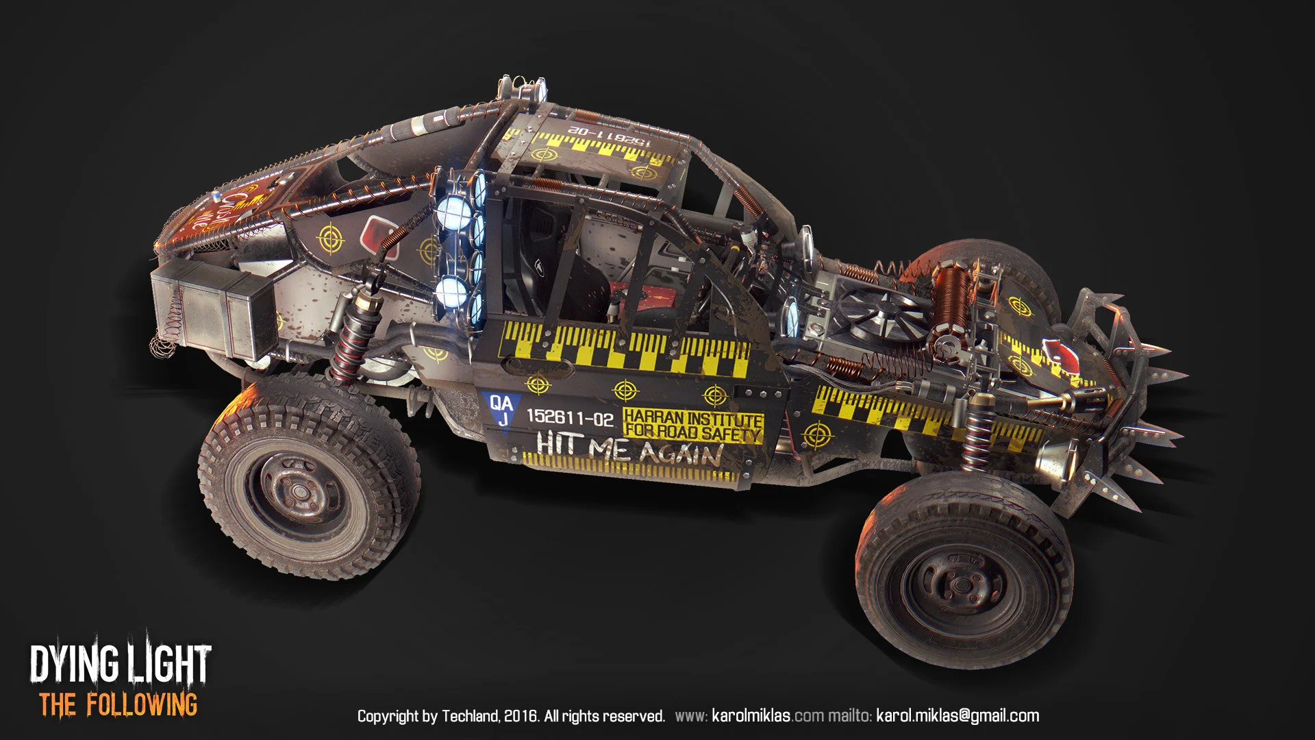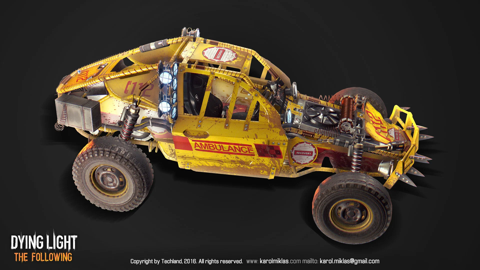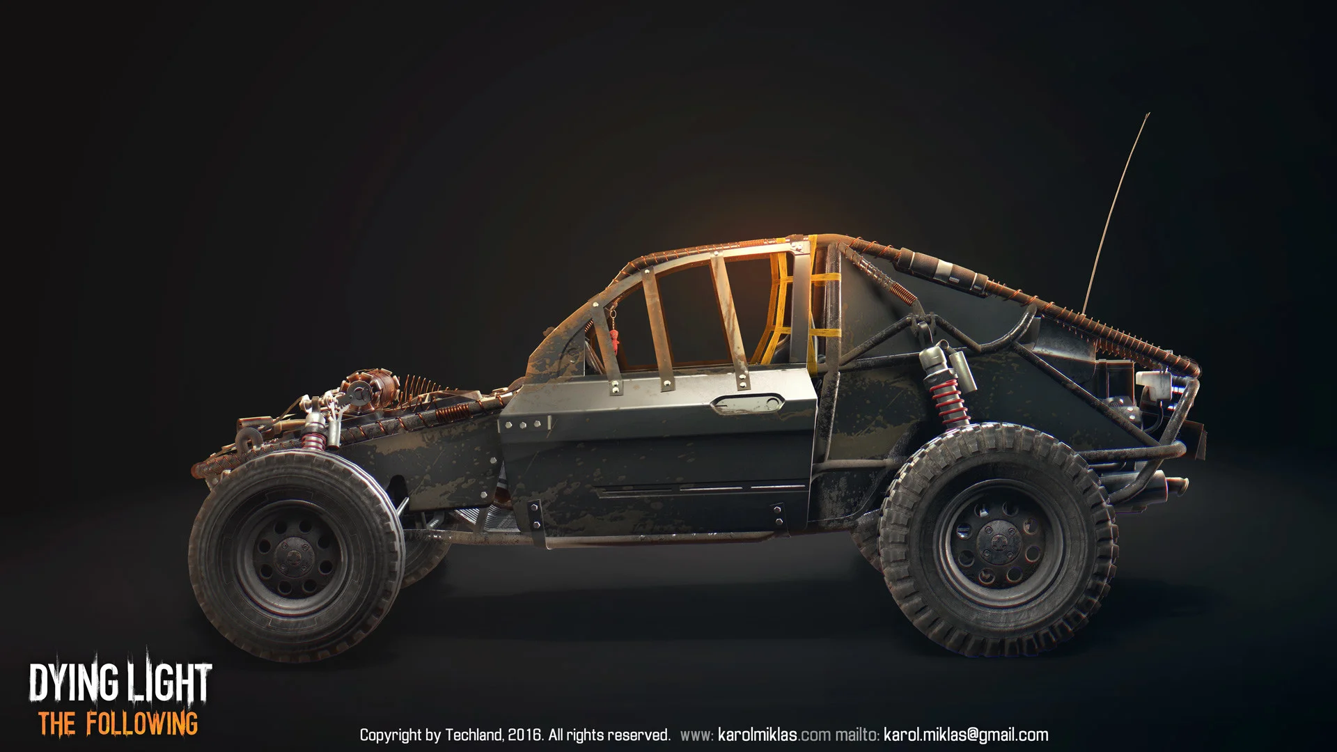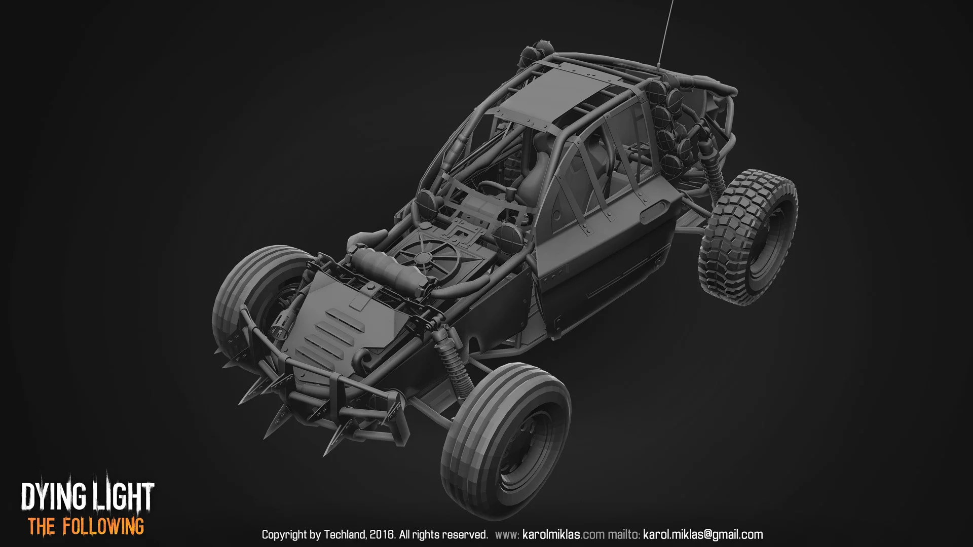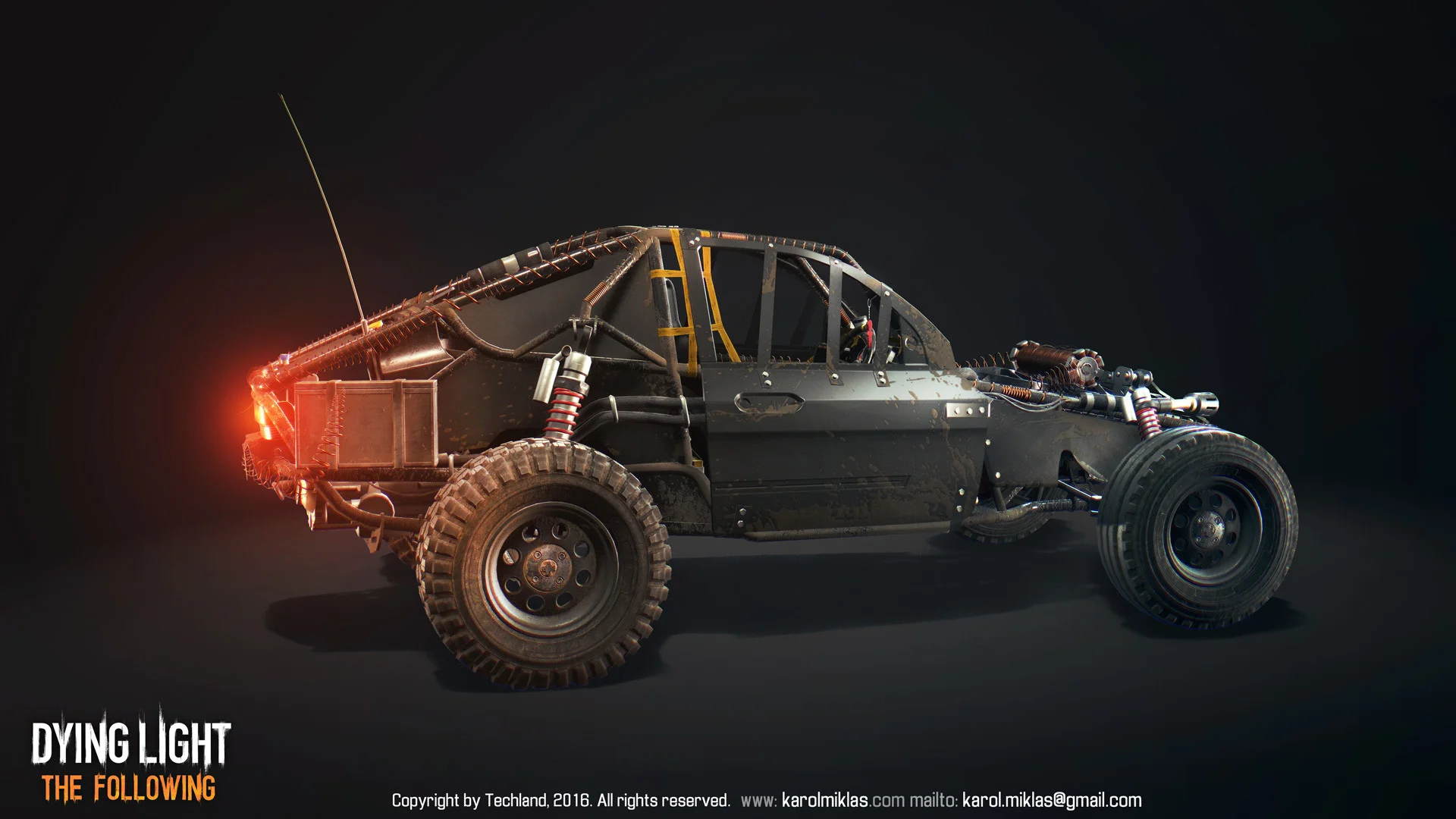 The main vehicle from Dying Light’s DLC. Serves as a companion vehicle for the player, allowing for multiple modifications, ranging from looks, armor to weapons. Even a flamethrower.