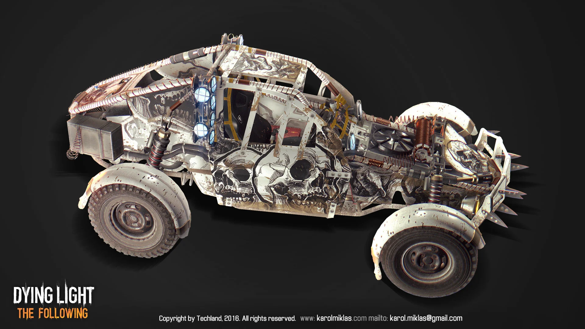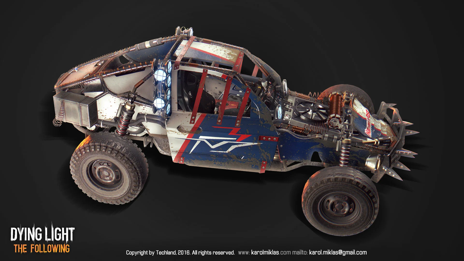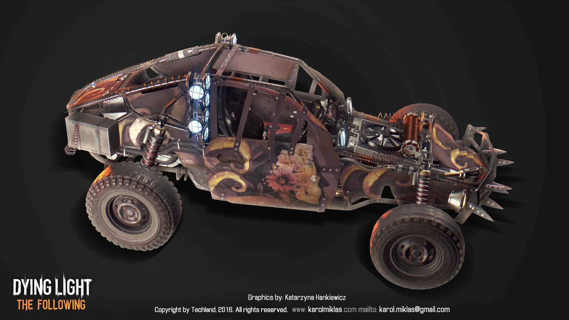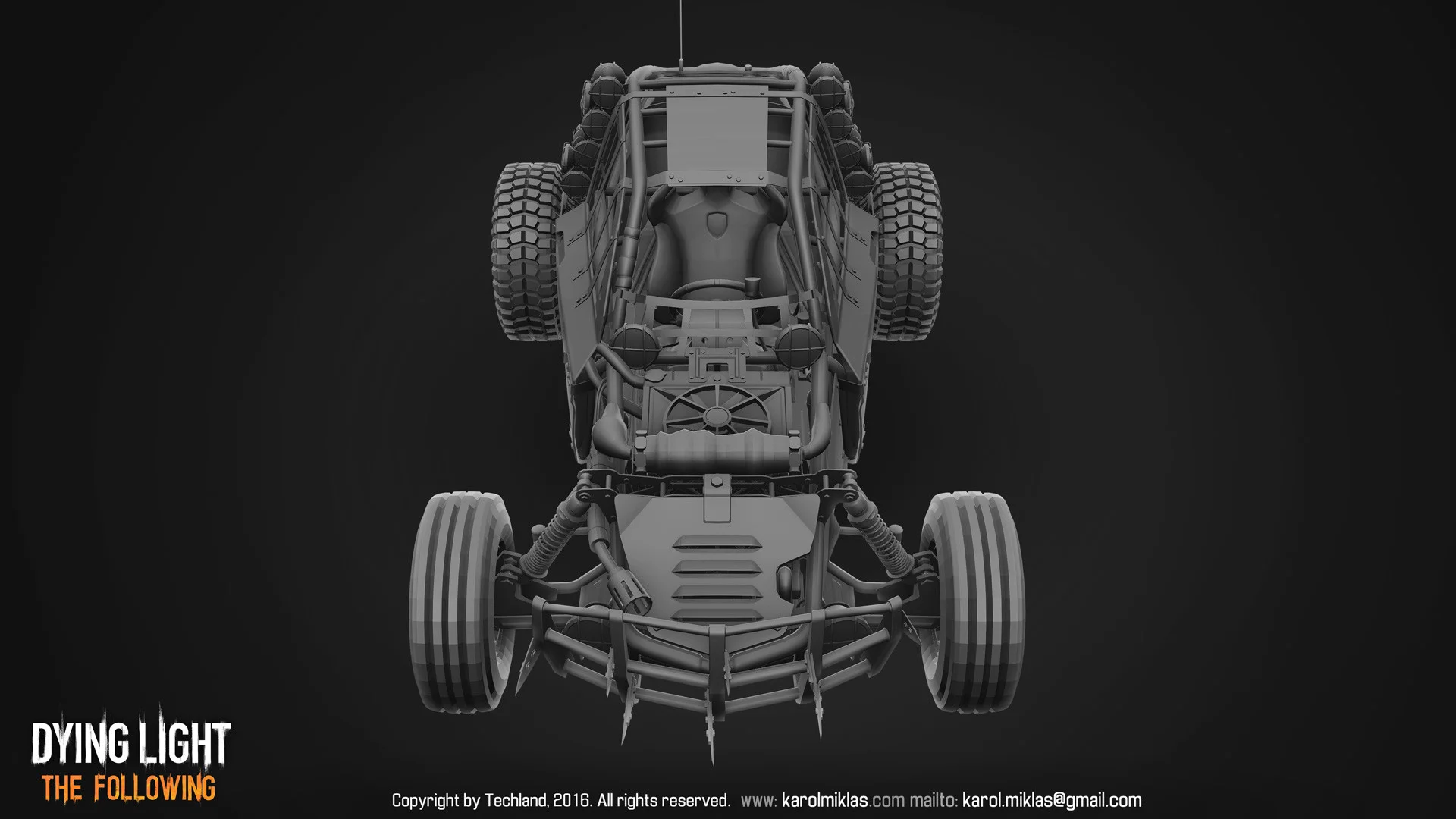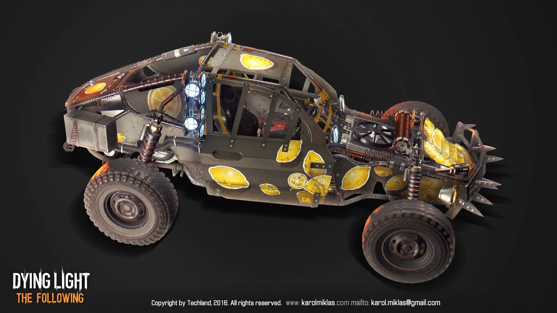 The main vehicle from Dying Light’s DLC. Serves as a companion vehicle for the player, allowing for multiple modifications, ranging from looks, armor to weapons. Even a flamethrower.