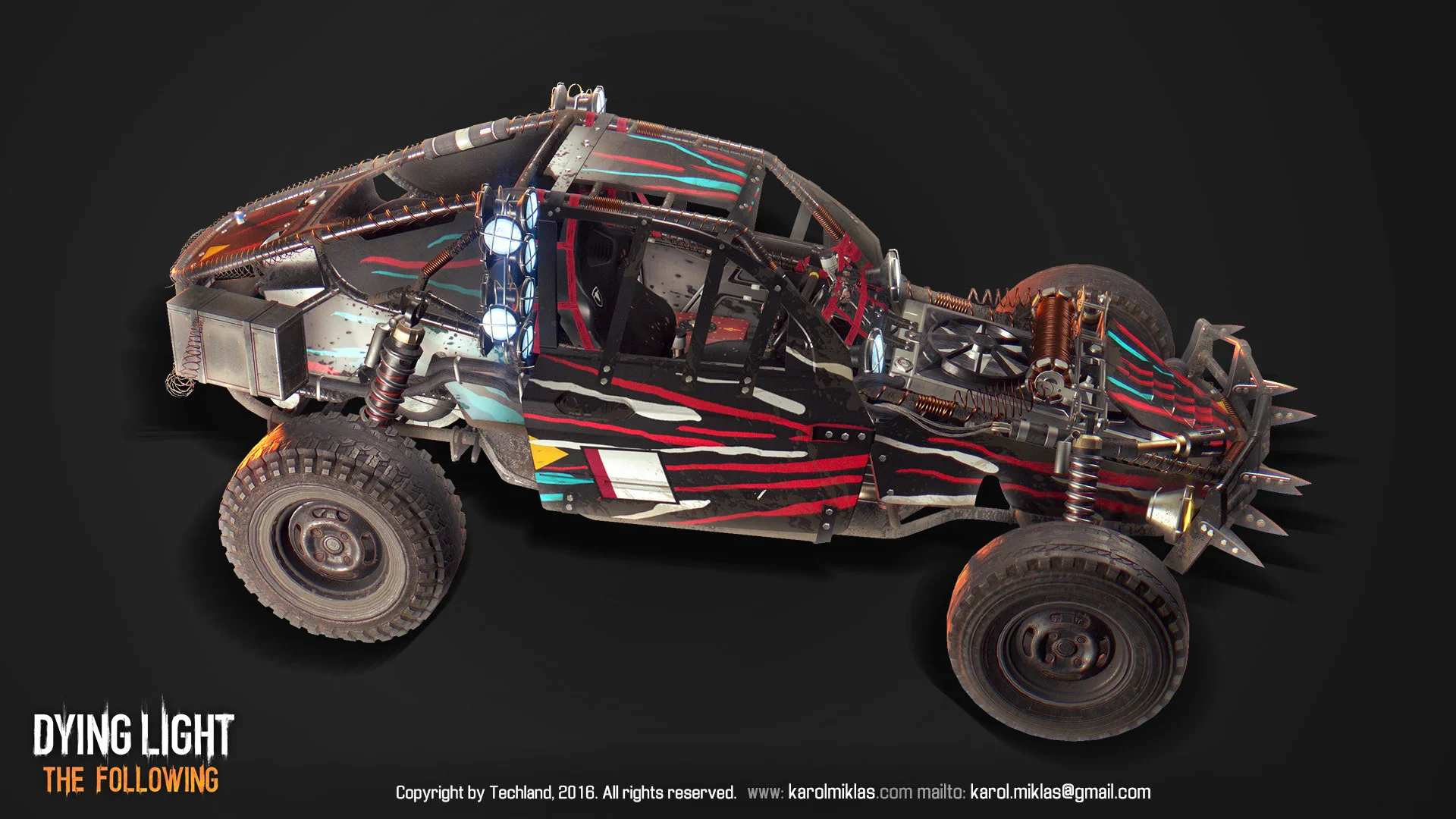The Buggy’s bodywork, being modular, growing as we find more parts in the game, allowed for application of multiple paintjobs. Those had to be found in the game’s world or were aquired by players during multiple marketing campaigns.